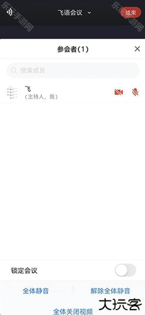 3、现在就创建成了一次会议,到时间时就可以开始开会了,这里可以看到参会者,可全体静音。