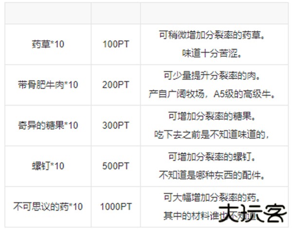 饲料一共有6种,可在商店中购买,可增加微生物分裂变异的几率。