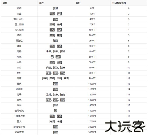 容器一共有24种,可在商店中购买,每种容器的属性都各不相同,利用组合搭配可以培育出不一样的微生物蛋蛋。