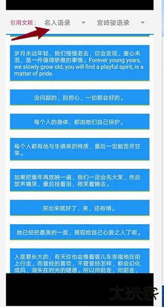 6、点击主页的分号按钮,可以加入更多名言名句。