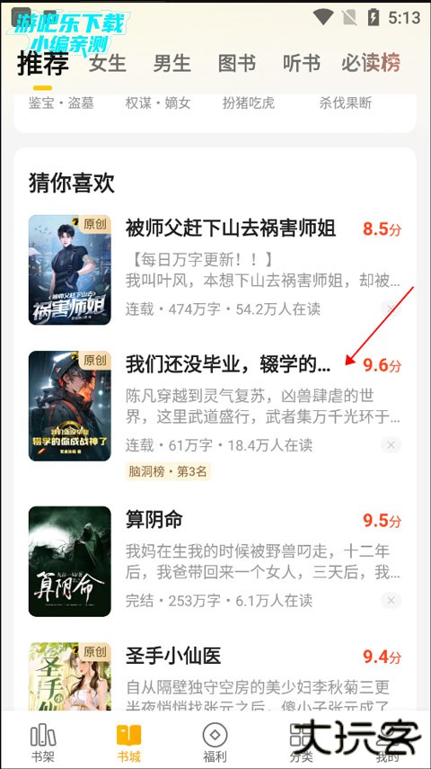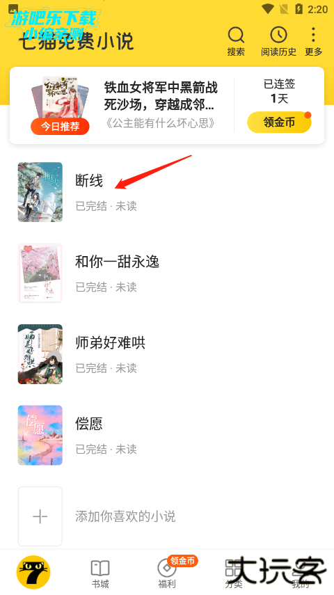 1、这里是可以免费下载小说的,很简单,打开该app后进入书架找到你即将下载的小说点击进入。