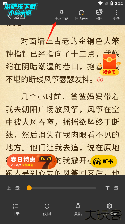 4、再然后点击看小视频下载全本,或者领取金币后点击金币下载全本也可。