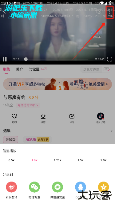 4、点击播放页面右上角的三点还可以对倍数进行调节