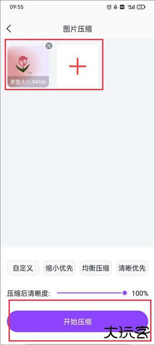2、在你的相册中找到你想要压缩的图片,还可以批量压缩,然后点击下方的选项并开始压缩,压缩好了之后就可以保存到本地相册中去了。