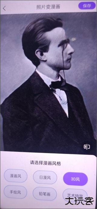 2、在相册中选择一张照片,然后选择漫画的风格,弄好之后点击右上角的保存按钮即可。