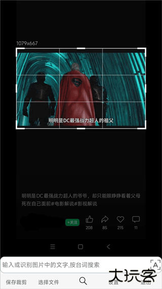 右下角 A 是文字识别; 点发大镜, 把白框发送给搜索引擎; 如果有台词,同时进行台词搜索