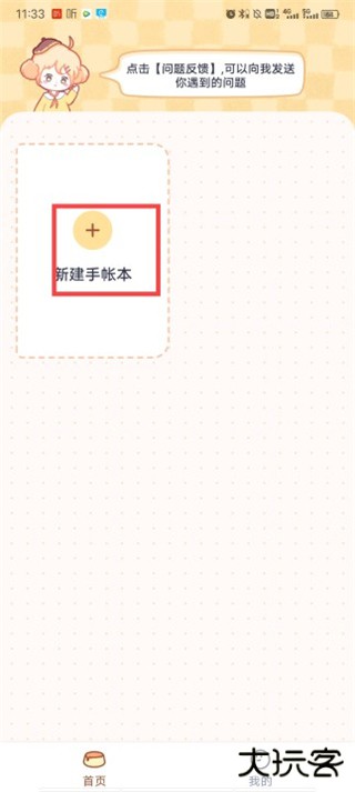 1、在本站下载安装并打开布丁手帐app,进入软件后点击创建手账。