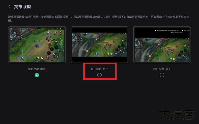 4、进入到其超广视野设置界面之后,就可以点击设置想要的超广视野游戏,比如英雄联盟,点击进入设置;
