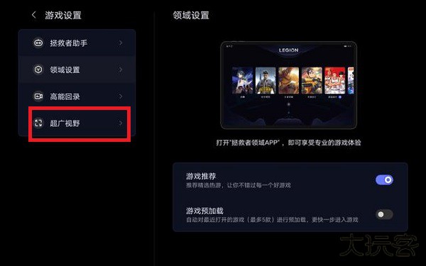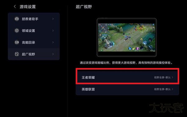 3、在设置界面左边最下方的位置就是【超广视野】点击进入到该设置界面;