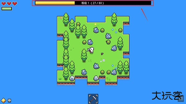 游戏界面正上方显示玩家当前的经验值与等级,最高等级为65级