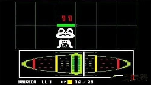 点击“fight”进入攻击画面,形式和节拍音游差不多,在白色条纹从左向右移动时,在中间处确定打出最大伤害。