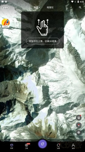 共生地球APP涵盖了大量交互、体验玩法,其中比较推荐大家体验的是3D影像、最新影像、对比影像功能,通过点击地图上的气泡直接进入互动界面,给大家看看3D功能的效果。所有地形有起伏的地区,都能直观地感受到立体效果的视觉冲击。