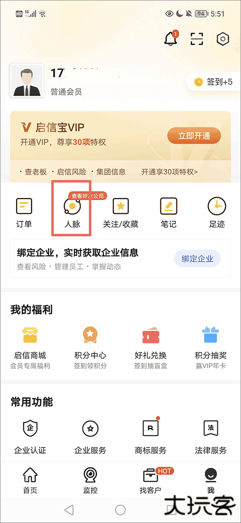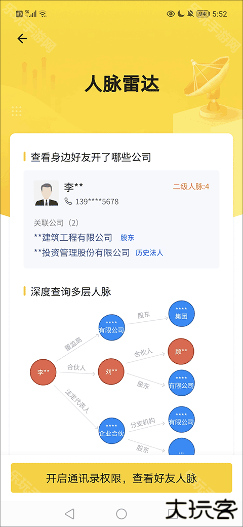 2、在人脉雷达界面找到并点击“开启通讯录权限,查看好友人脉”选项;