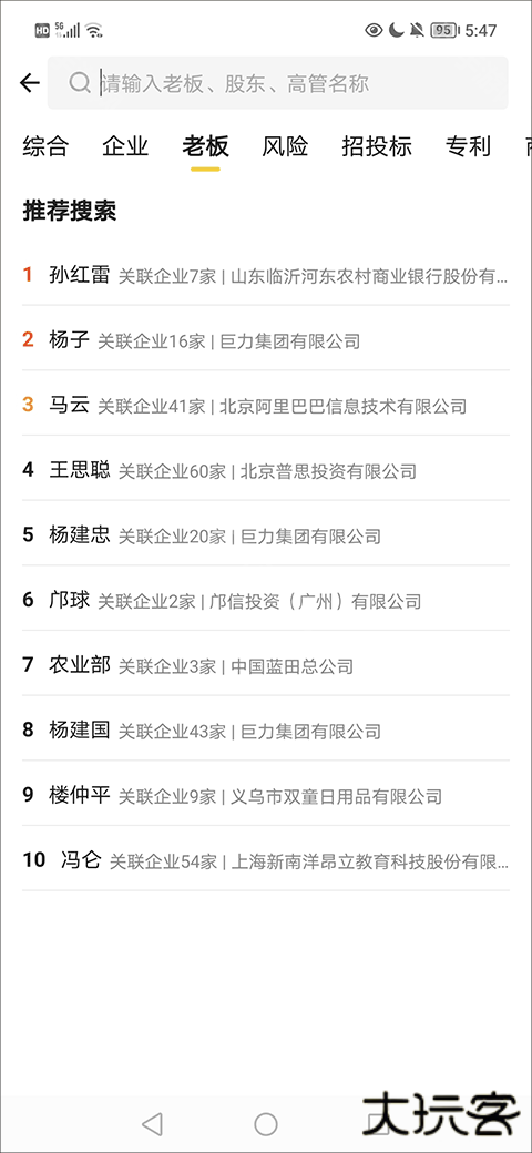2、在具体输入界面选择好老板一栏后输入老板的名字,在实时反馈的栏目中找到并点击相应的老板个人信息展示选项;