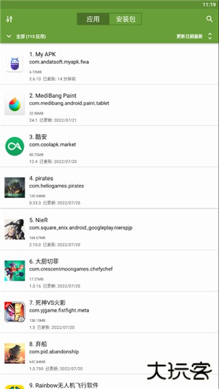 3、通过软件可以轻松分析手机里的应用,还能把它们提取成APK安装包。