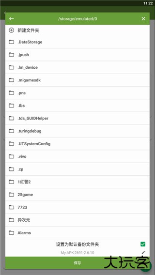 3、新建一个文件夹或者选择一个文件夹,设置为默认备份文件夹并点击保存;