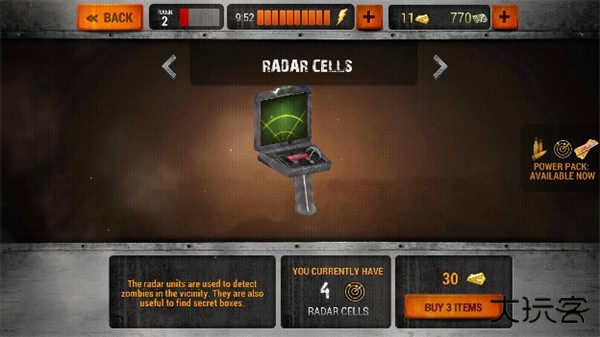 7、除了武器之外,还会有一些辅助道具供玩家购买,比如僵尸探测器等等,这些都需要金钱才能购买,所以玩家一定要尽可能的多赚一些钱。