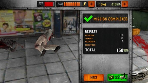 4、当游戏结束后会进入结算阶段,如果玩家爆头射杀僵尸,将会得到更多的金钱。