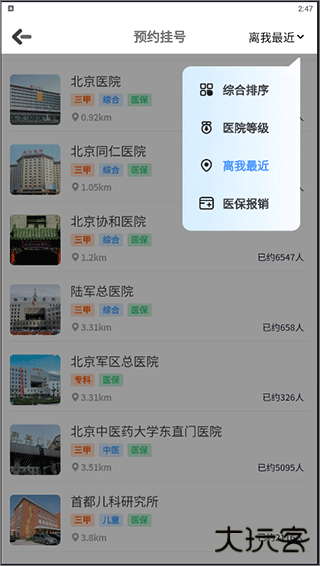 2、进入预约挂号页面,选择医院,也可按要求精确选择医院;