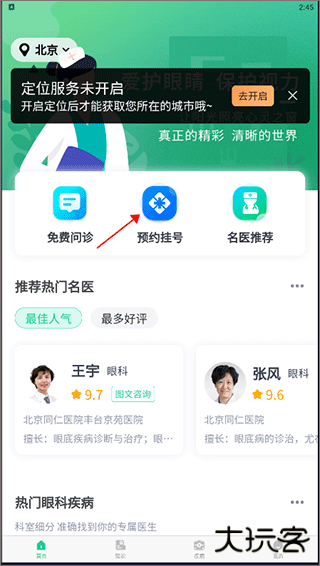 3、提供预约挂号、医院医生评分、疾病咨询、眼科疾病自测工具等多项服务,花最少的时间,选好眼科专家,专病专治。
