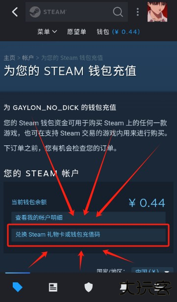 2、点击兑换Steam礼物卡或钱包充值码