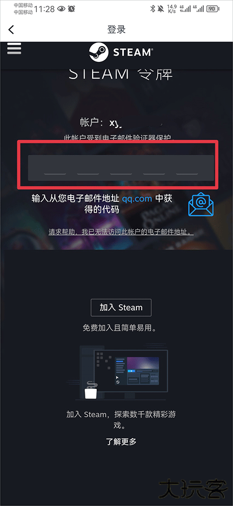 3、账号登录需要steam令牌才可登录,从绑定的邮箱中可以查看获取到的steam令牌