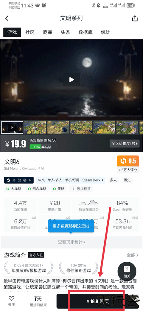 2、进入游戏详情界面后点击右下角购买