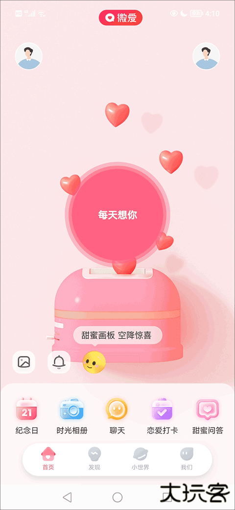 想不想有一个最私密、只为你俩打造的软件,只有你俩在里面聊天、甜蜜?那就快用微爱吧,一切都专属于你们俩:聊天,发图片,发位置,让对方知道你的心情状态,还能记录重要纪念日,如甜蜜的第一次和你俩的生日。