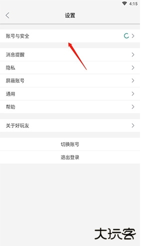 2、点击“账号与安全”选项。