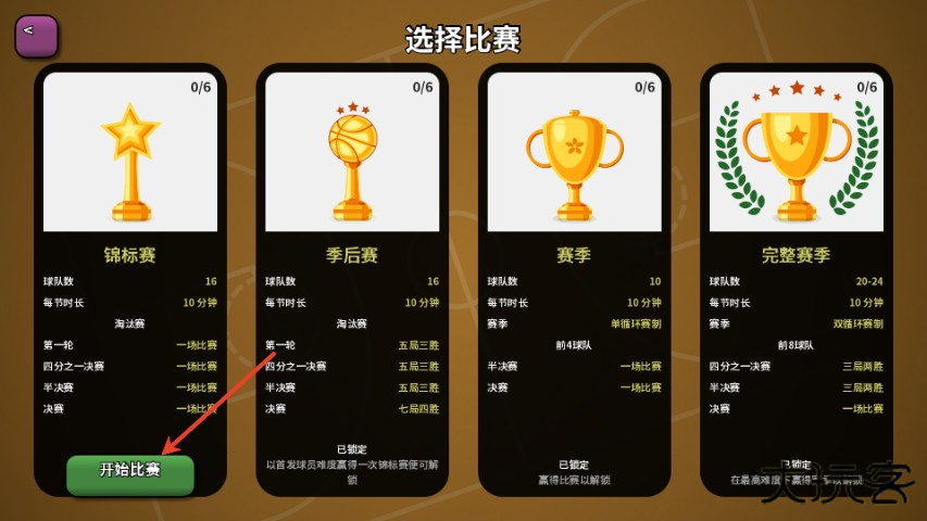 3、选择锦标赛并点击开始比赛;