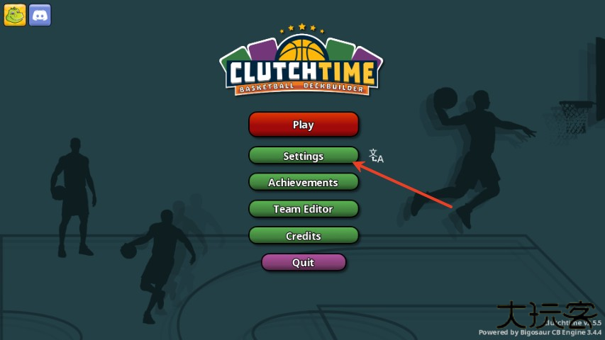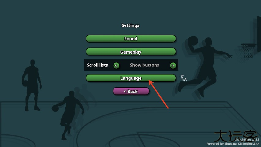 1、在本站下载安装篮下王朝,运行游戏并点击“settings”;