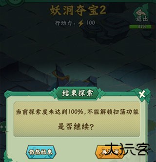 其次探索度达到100%才算完成探宝副本并解锁扫荡功能,那么问题来了,