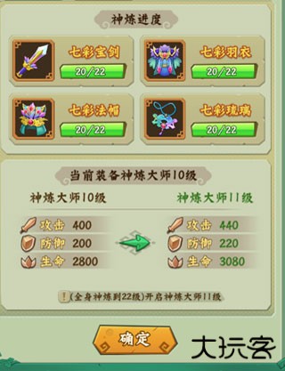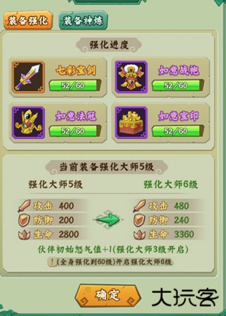 注:在秘境探宝获得的装备出现多余的时候可以将装备放到熔炉中进行分解,分解获得的妖玉可以在妖玉商店换取神练石或者葫芦娃碎片,进一步提升战力。