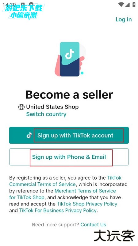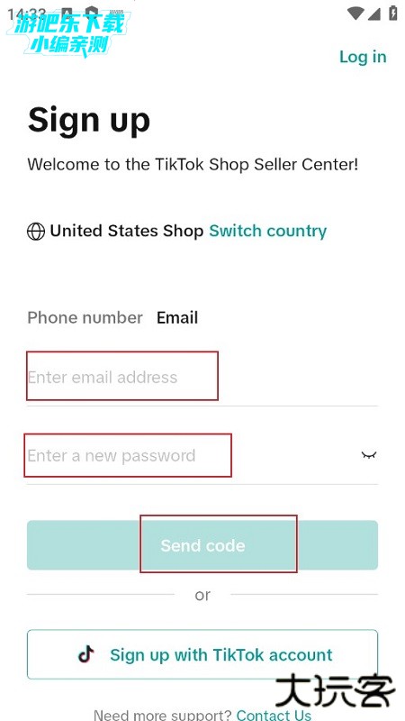2、打开软件后可以使用tiktok账号、海外手机号、电子邮箱进行注册登录,在注册页面上填写您的个人信息;
