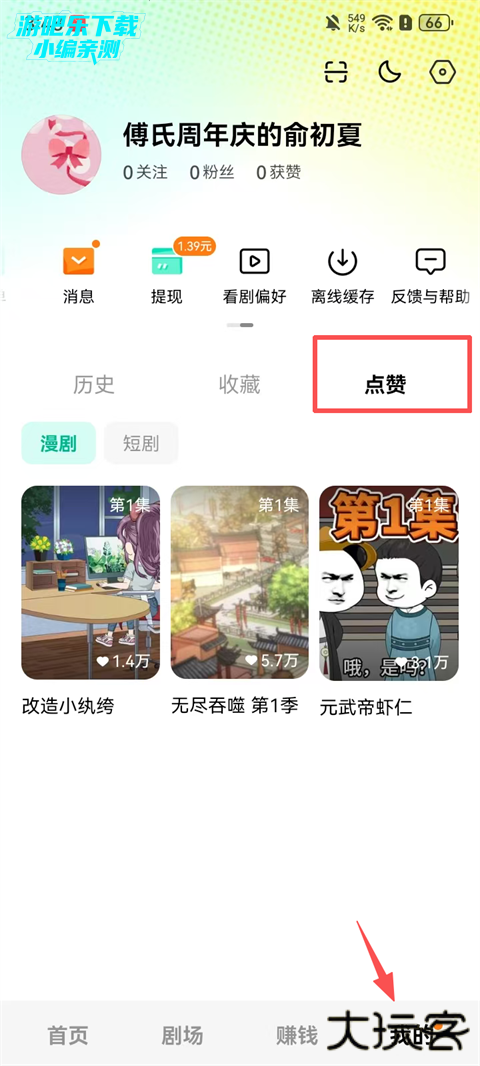 点击【我的】-【点赞】查看已点赞过的短剧。