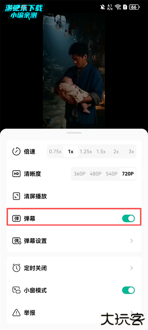 同样点击播放页的【...】,在弹出的底部菜单中开启弹幕即可。