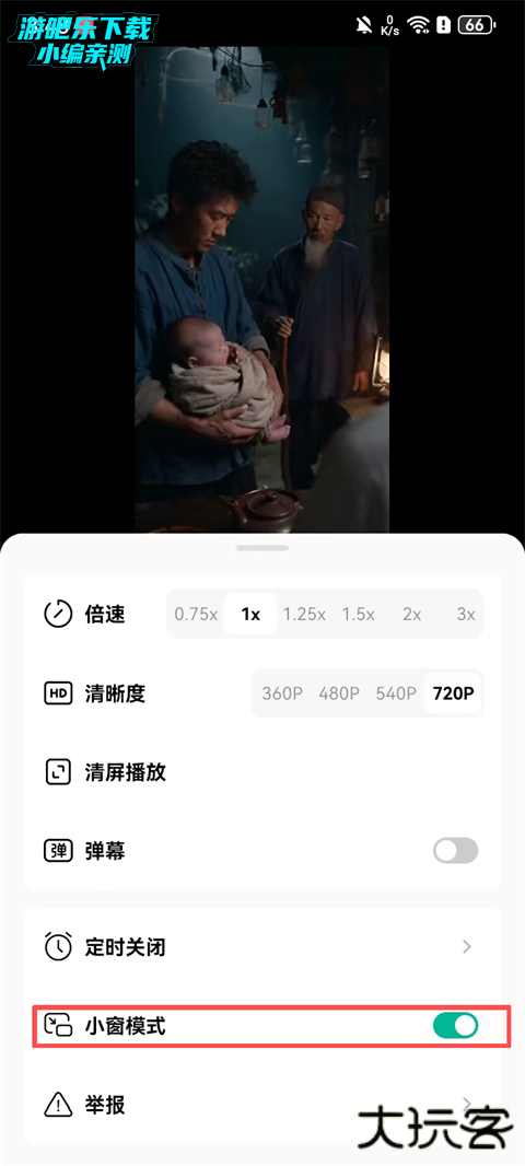 2、开启底部的【小窗播放】即可开启悬浮窗功能。