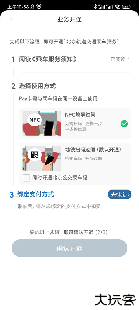 2、如果用户手机内有NFC功能的话就可以直接手机过闸了;