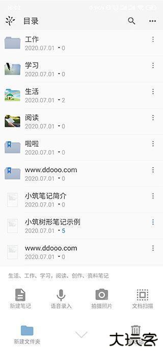 3、点击添加板块,就会看到新建笔记、拍照、语音录入、文档扫描等工具: