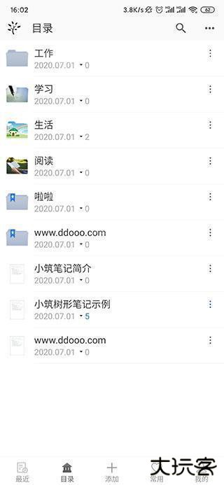 2、登入后会看到最近、目录、添加、常用、我的五个板块: