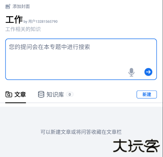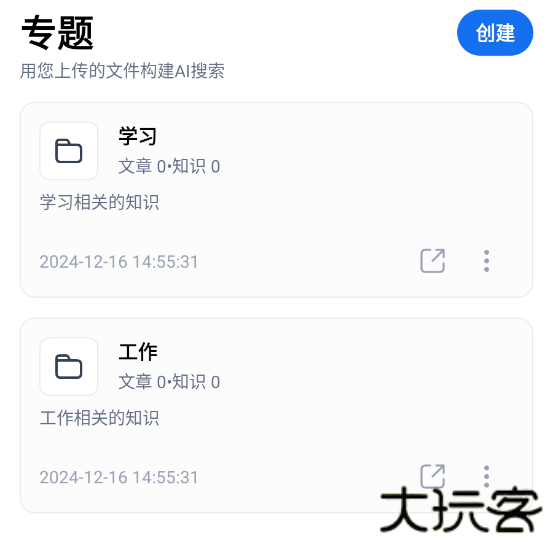 玩家可以上传自己的文件构建AI搜索,由两部分组成,分别是文章与知识库。