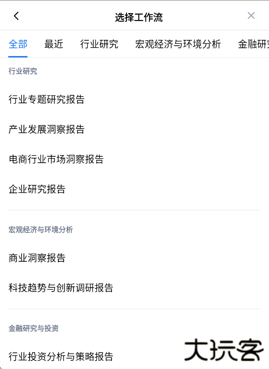 行业调研、报告撰写都可以交给AI。秘塔AI搜索有7大类、25个细分场景的工作流,涵盖行业研究、经济分析、金融投资、运营方案等各种场景。