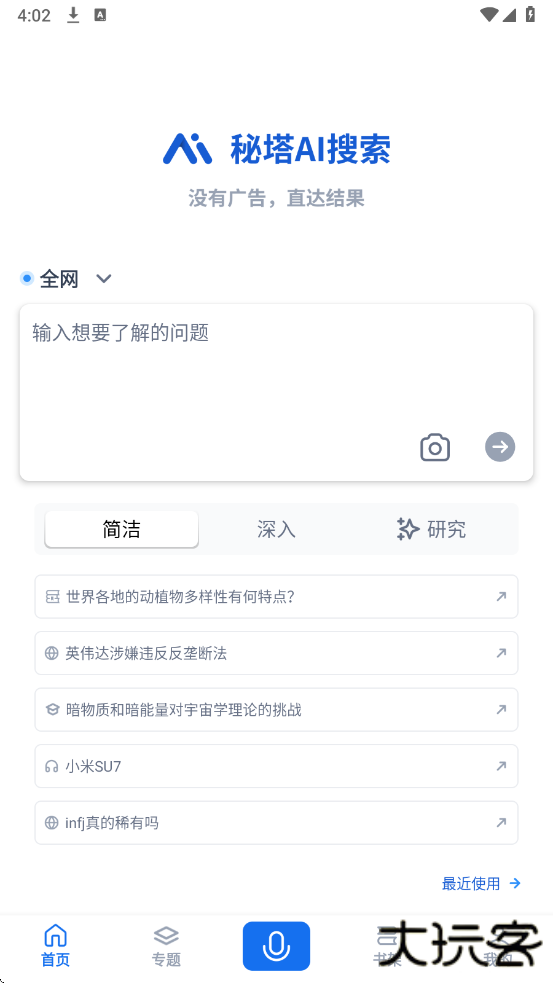 界面清爽简洁,没有广告,直达结果,让搜索回归本质;