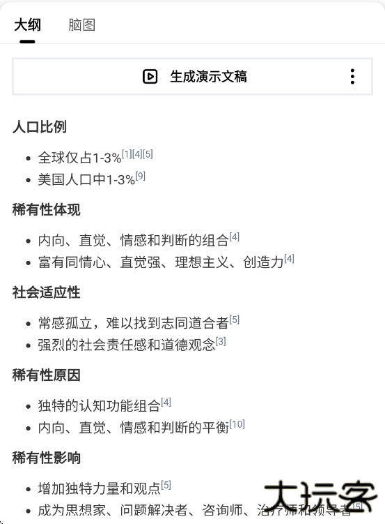 2、自动生成大纲,脑图,相关事件/组织/人物表格。