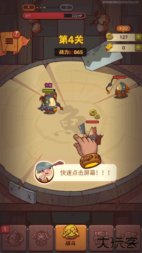 1、过关对战模式,作为游戏主公点击屏幕,击败咸鱼对手。