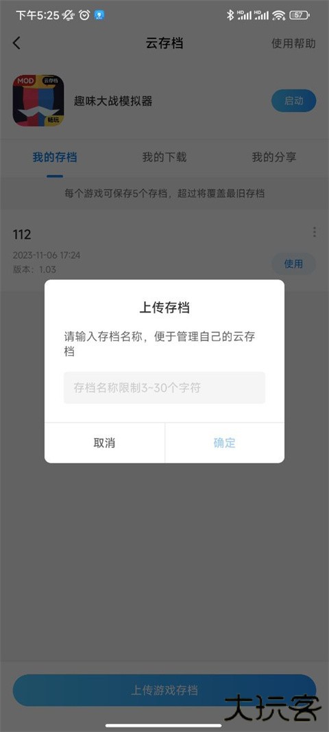 方法2:上传存档需要启动支持云存档的畅玩游戏并玩一段时间之后退出游戏,然后点击游戏图标进入云存档管理界面,点击下方“添加存档”,给存档命名并点击上传即可成功上传自己的游戏存档。