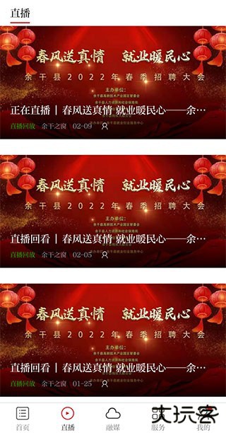 2、在【直播】页面,我们可以看到一些直播入口,它们是按发布的最新顺序进行排列的,对于已经结束的直播还提供了回放功能。