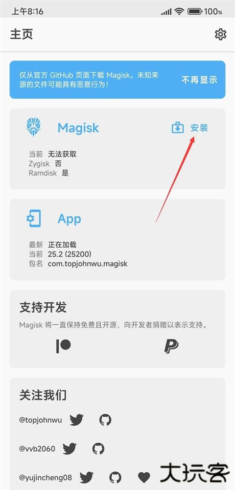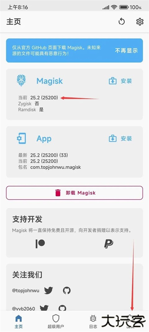 MagiskManager:这个其实只是一个授权的APK,他的作用是在手机刷入面具补丁的时候
