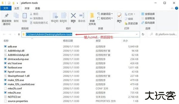 13.打开platform-tools文件夹,并在路径栏输入cmd并按回车