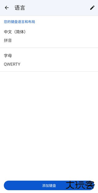 3、这个时候就可以看到谷歌键盘的基本设置了,点击顶部的语言;